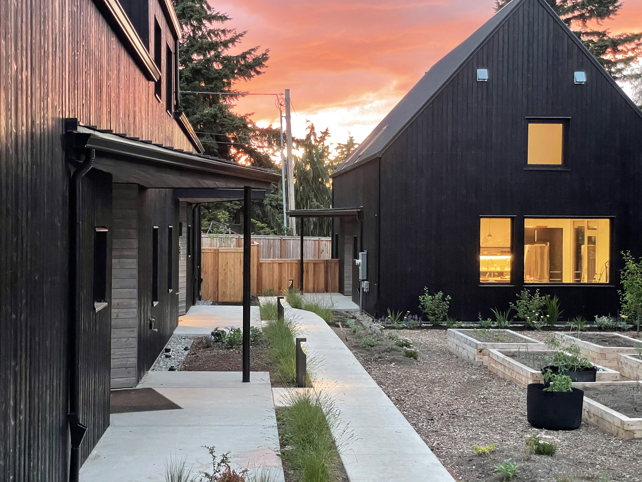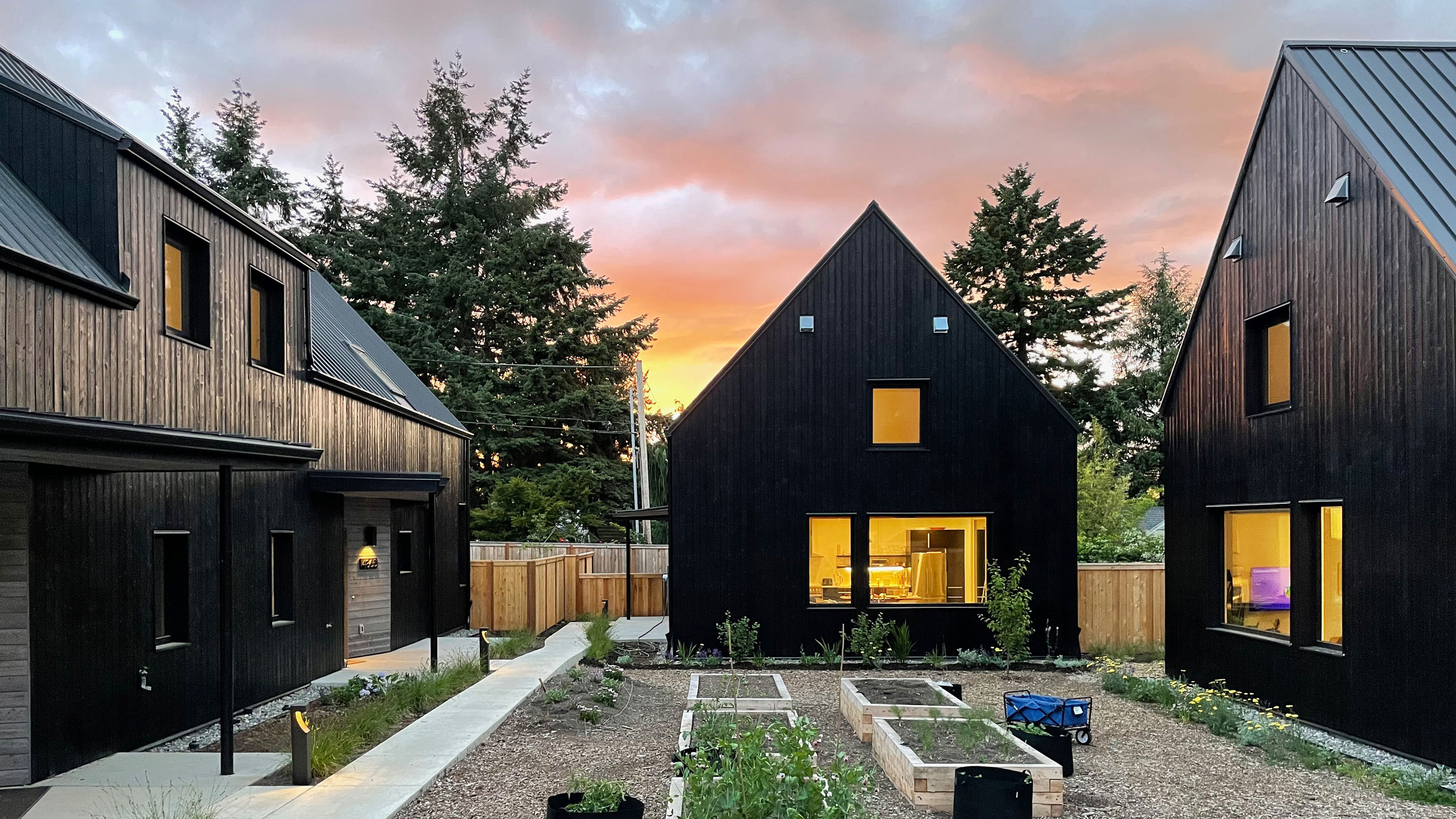 The development (HOA) is designed to have a very small ecological footprint and provide meaningful community spaces while fostering a more sustainable built environment.