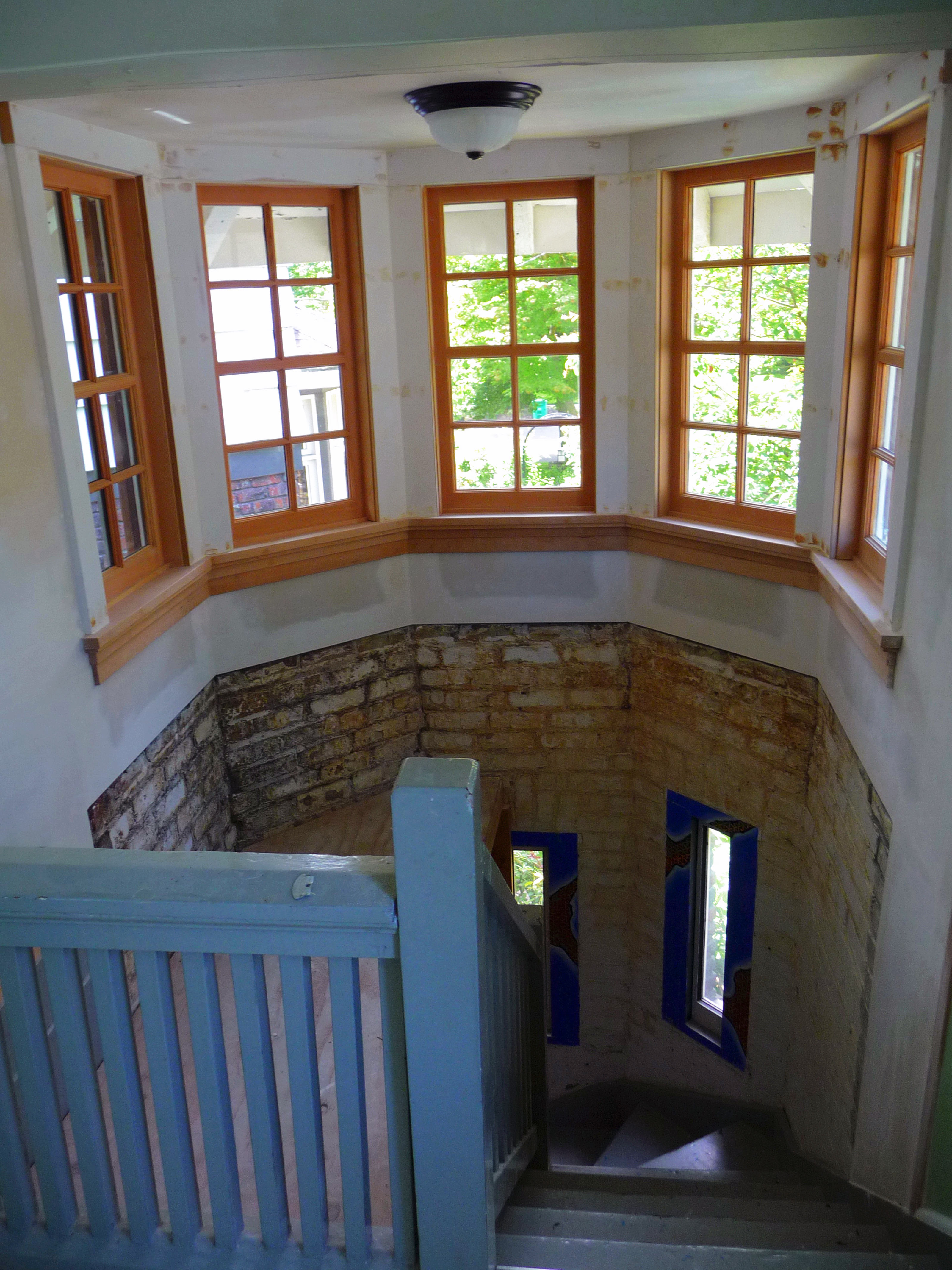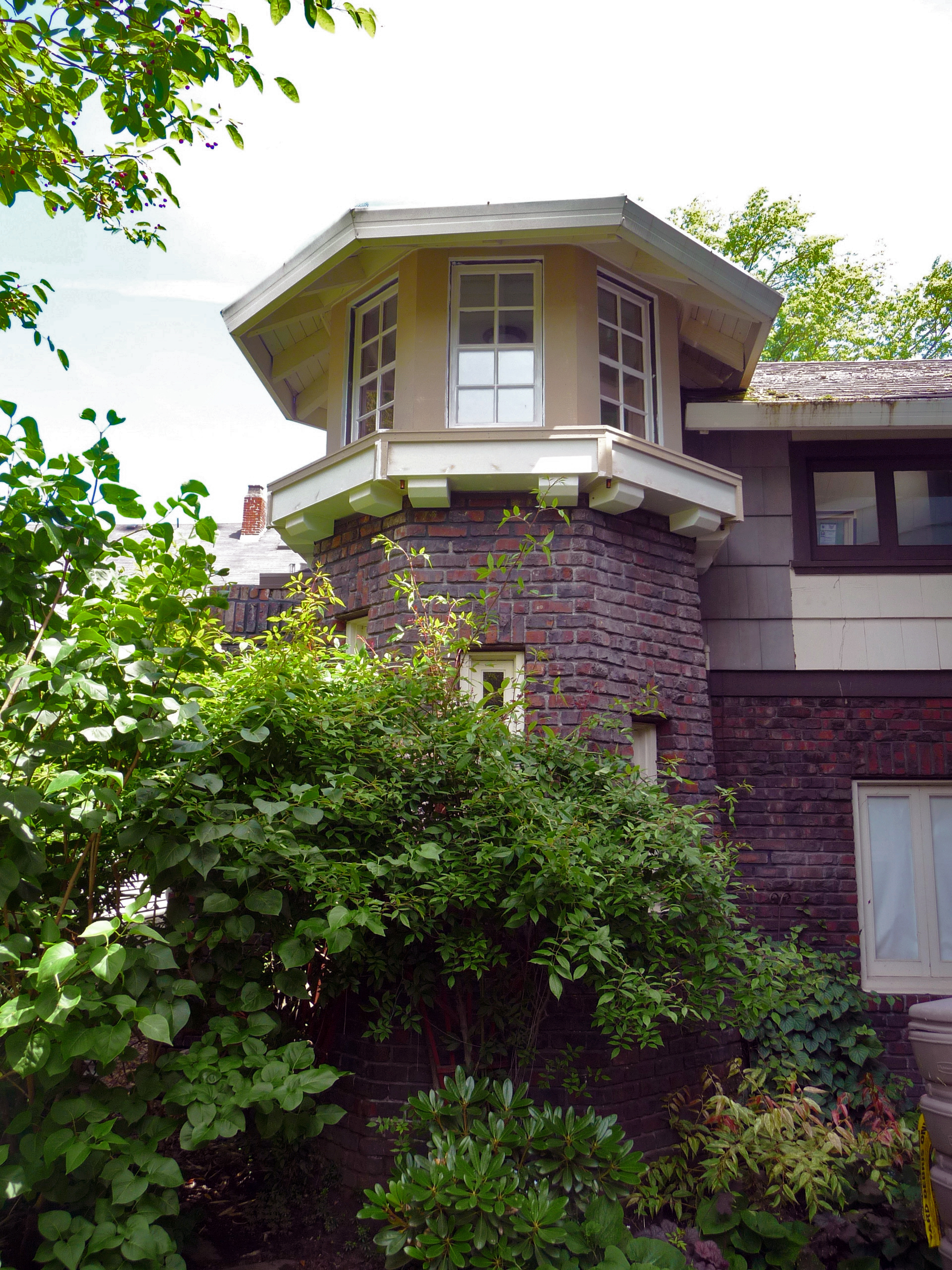 Due to a large amount of rot and termite damage this beautiful home in Irvington required a complete re-build of its carriage house and turret. The roof was temporarily supported while work was done to the masonry and the entire wood structure was rebuilt. Care was taken to match the beautiful, historical details of the 1920's home. All new windows were added along with custom flashing and planter boxes designed to shed water and not cause a repeat of the previous damage. New painted cedar shingle siding was also installed on the house.