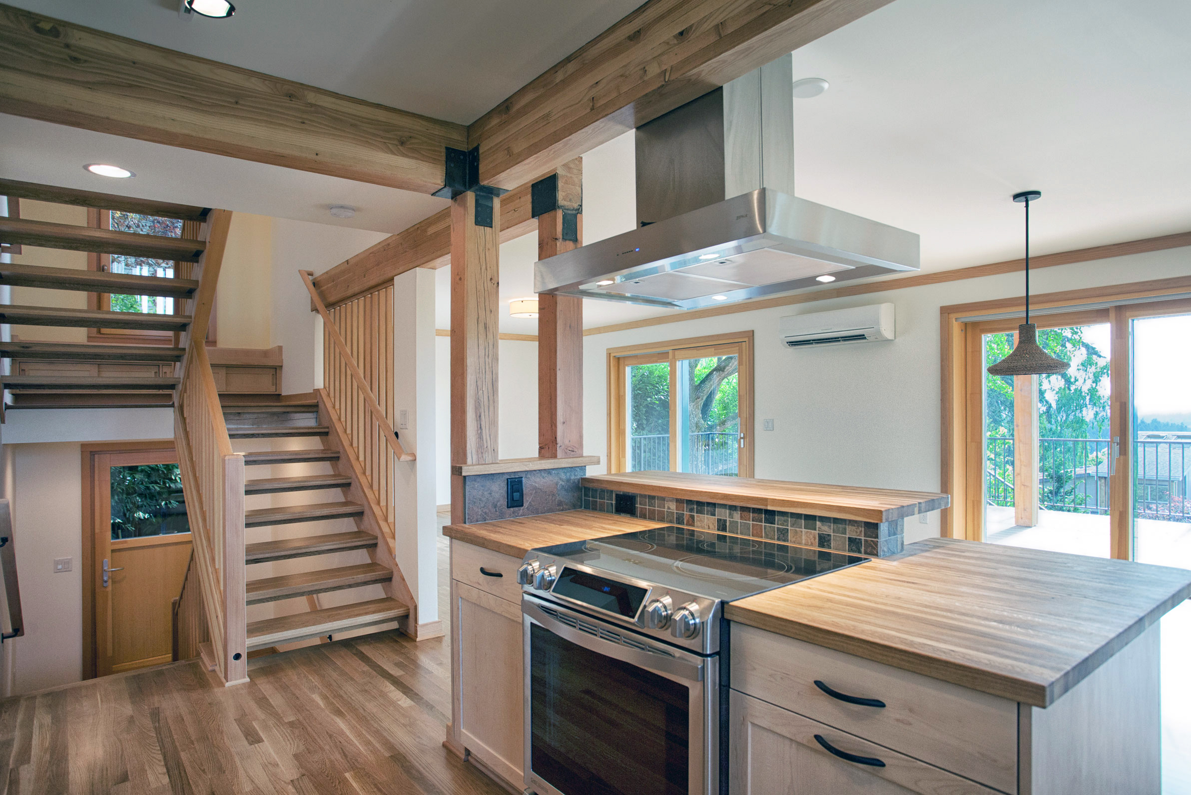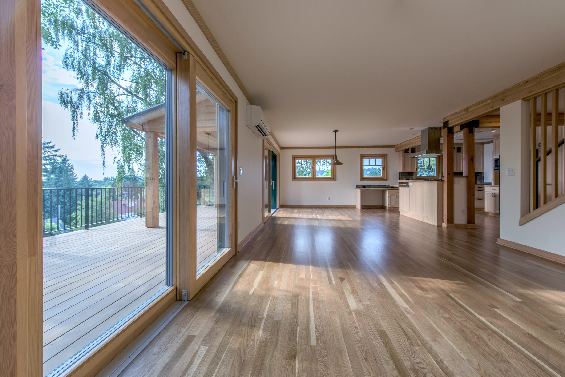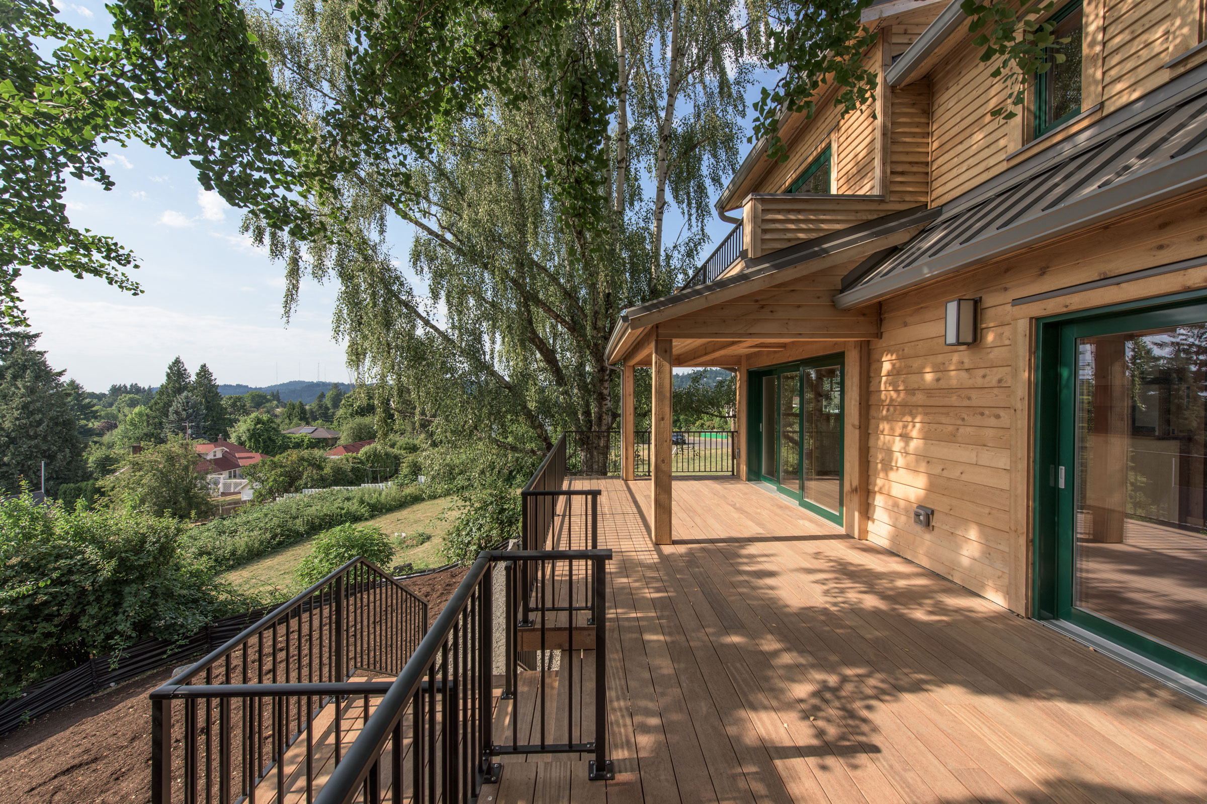 This beautiful new home is certified to Earth Advantage's Net Zero Ready and Platinum New Home certifications. Using triple pane windows from Zola, an extremely airtight envelope (0.5 ACH50) a Zehnder heat recovery ventilator and 2" of exterior cork insulation drives the energy usage of this home down to where a future solar array on the garage roof will offset its energy usage to zero. The current garage houses a small kitchen and bedroom and its monthly energy bill exceeds that of the entire main house!