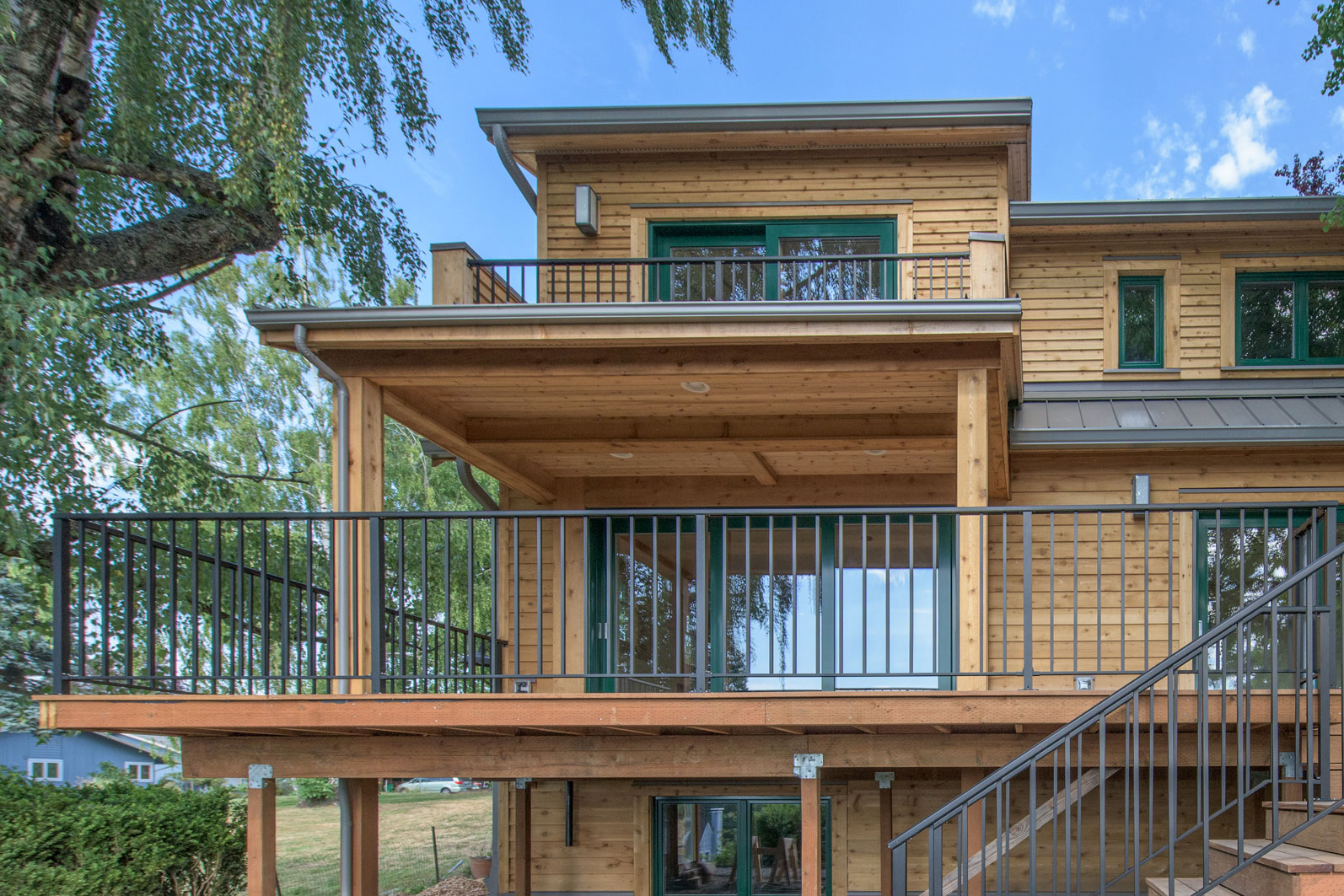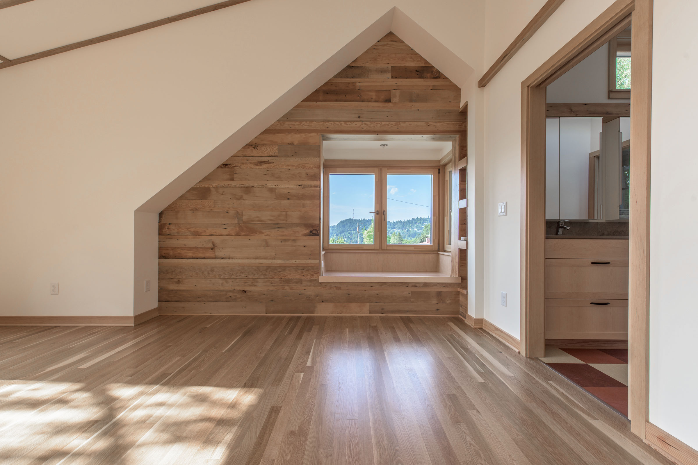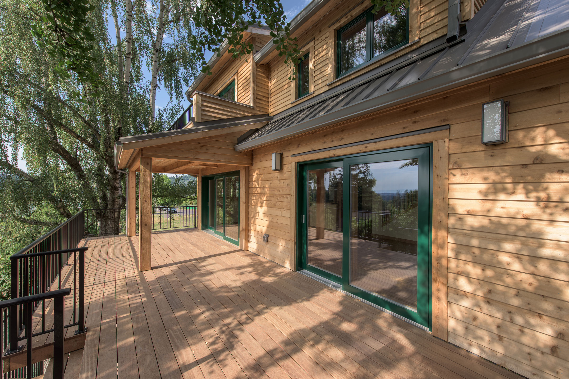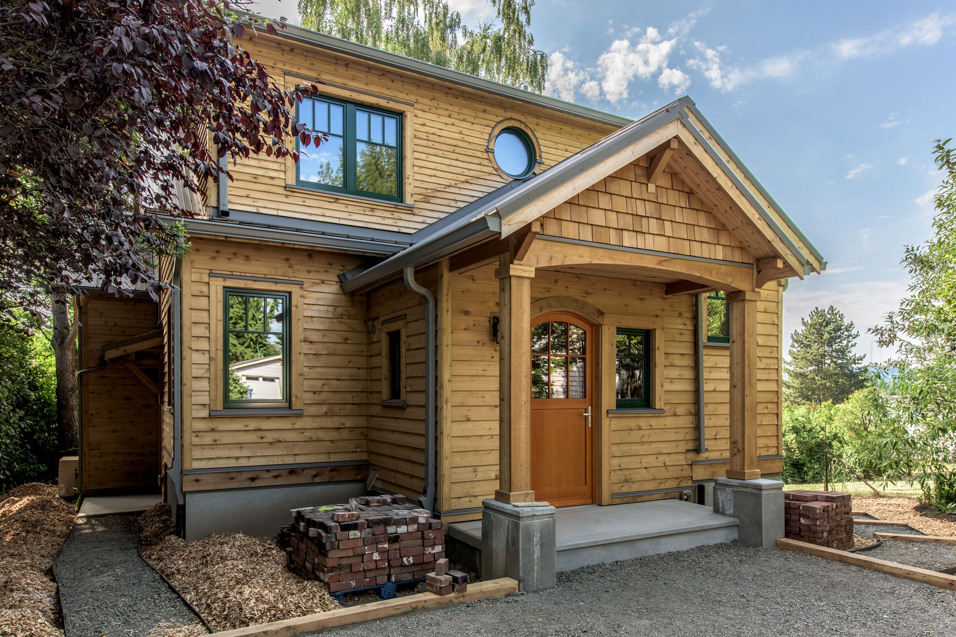 This beautiful new home is certified to Earth Advantage's Net Zero Ready and Platinum New Home certifications. Using triple pane windows from Zola, an extremely airtight envelope (0.5 ACH50) a Zehnder heat recovery ventilator and 2" of exterior cork insulation drives the energy usage of this home down to where a future solar array on the garage roof will offset its energy usage to zero. The current garage houses a small kitchen and bedroom and its monthly energy bill exceeds that of the entire main house!