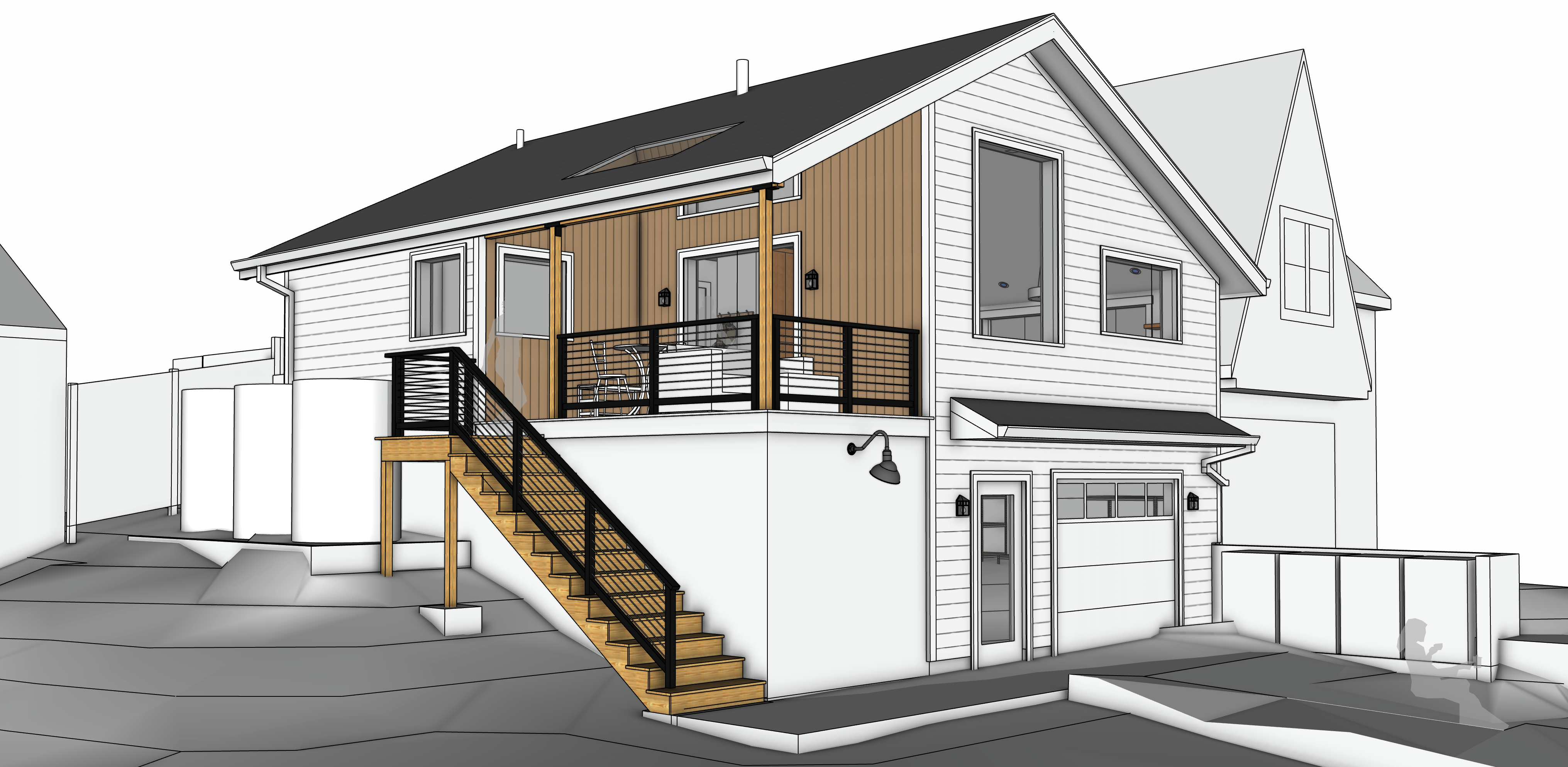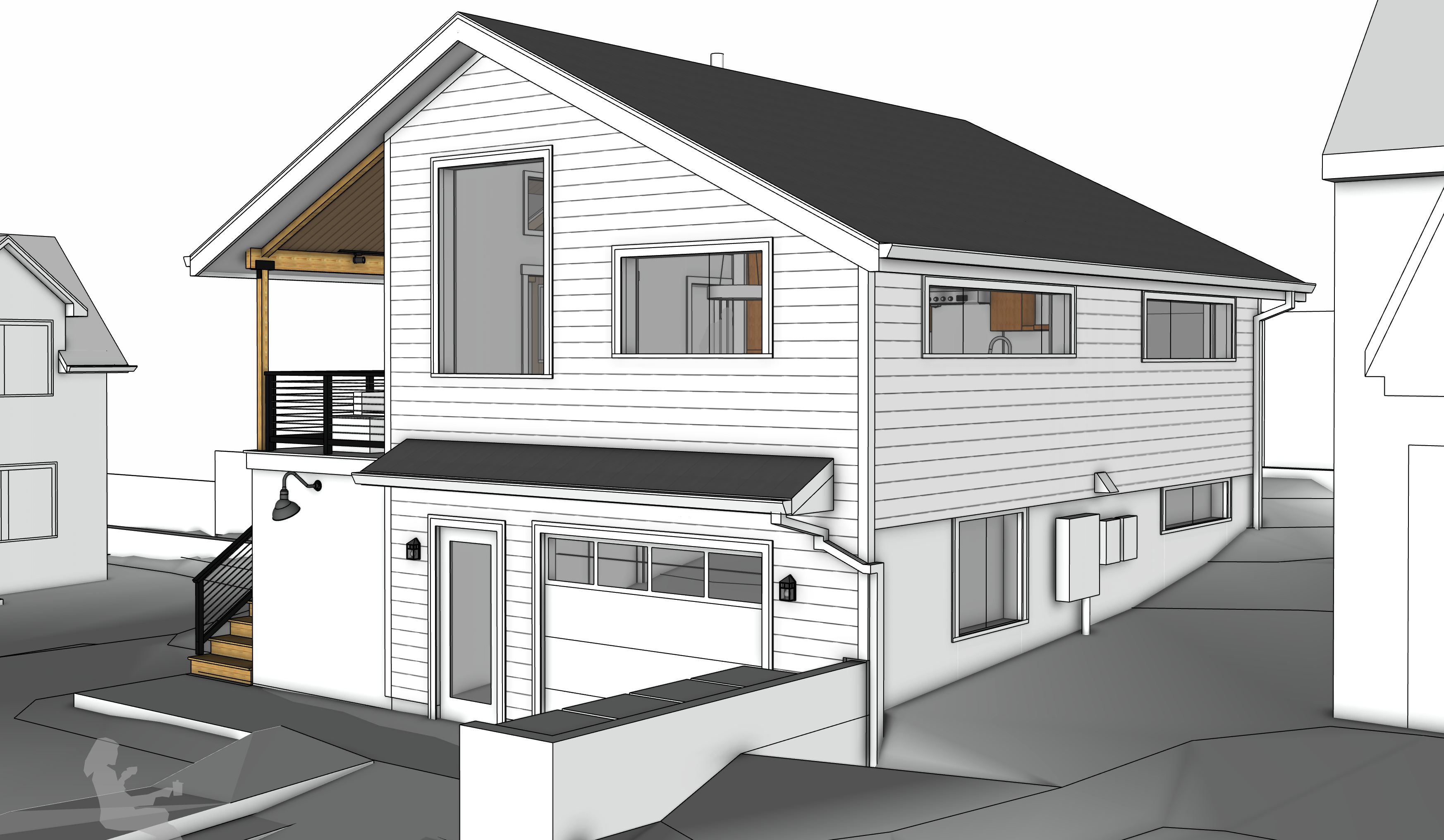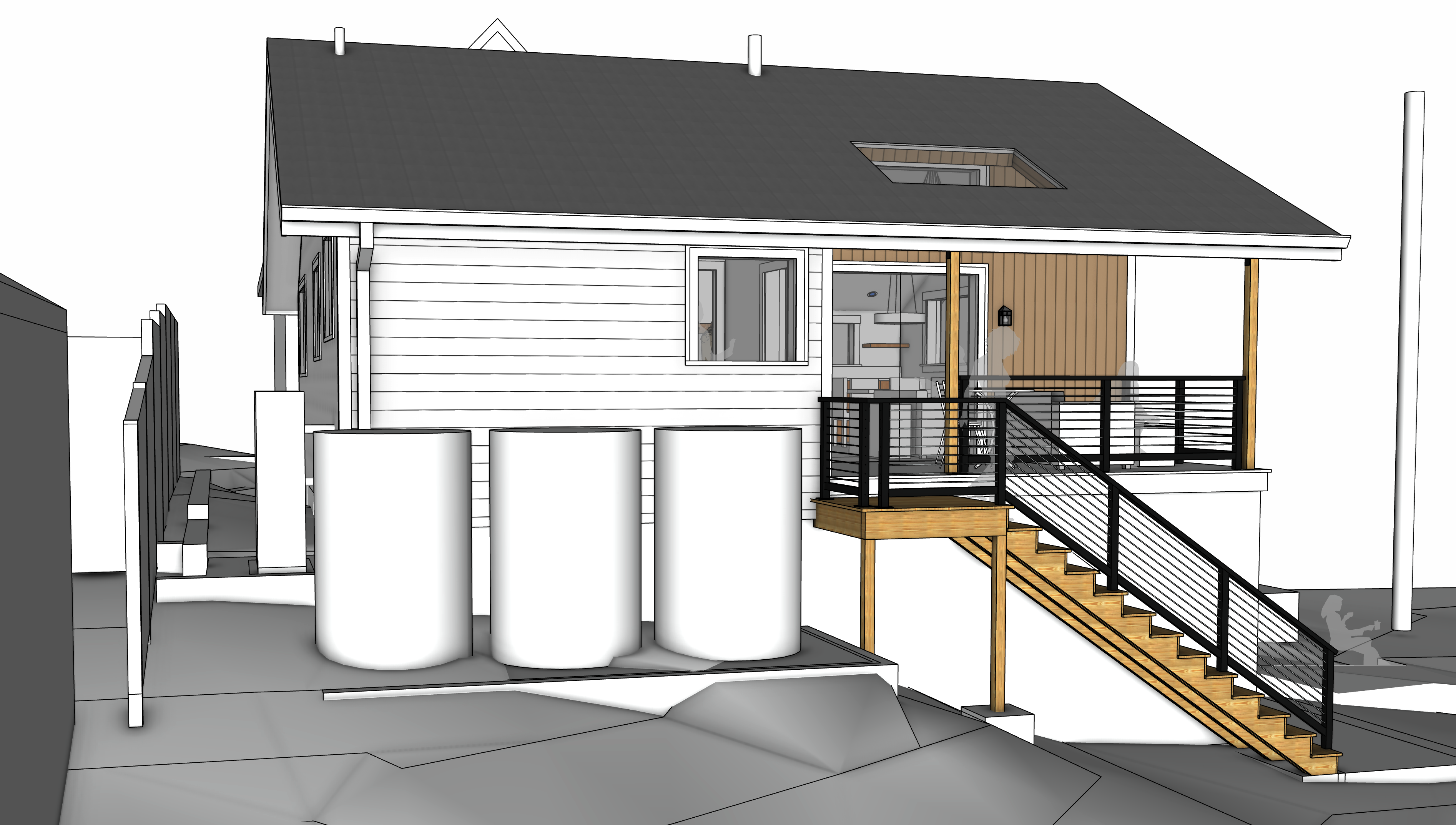 This accessory building and ADU designed by Birdsmouth Design Build started construction in March 2026 and should be complete by the end of the year. This approx. 1,400 sqft building will have a 600 sqft ADU above a garage and utility room. This will be a certified Phius Zero Passive House project with a focus on resilience. The building will include low embodied carbon materials and its low operational energy needs will be offset with solar and battery storage. It should be able to withstand cold snaps, heat domes, smoke events, seismic events, water disruptions and power outages while providing the occupants a comfortable and safe interior with extremely high indoor air quality. The site will include rainwater storage, gardens and edibles along with a natural landscape that will attract pollinators and other native species.